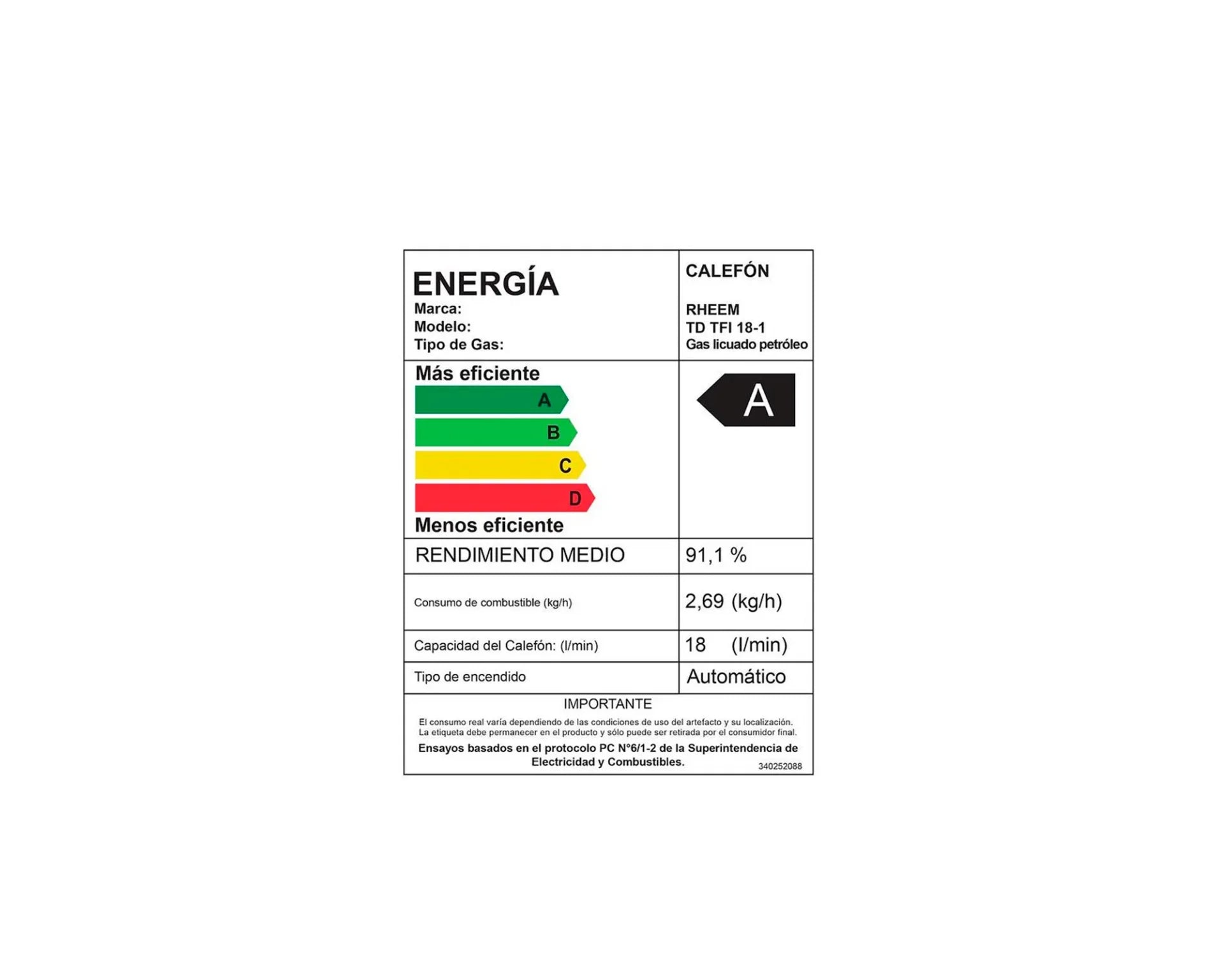 Calefont Ionizado Tiro Forzado 18 Litros Gas Licuado Modulante Prestige Rheem