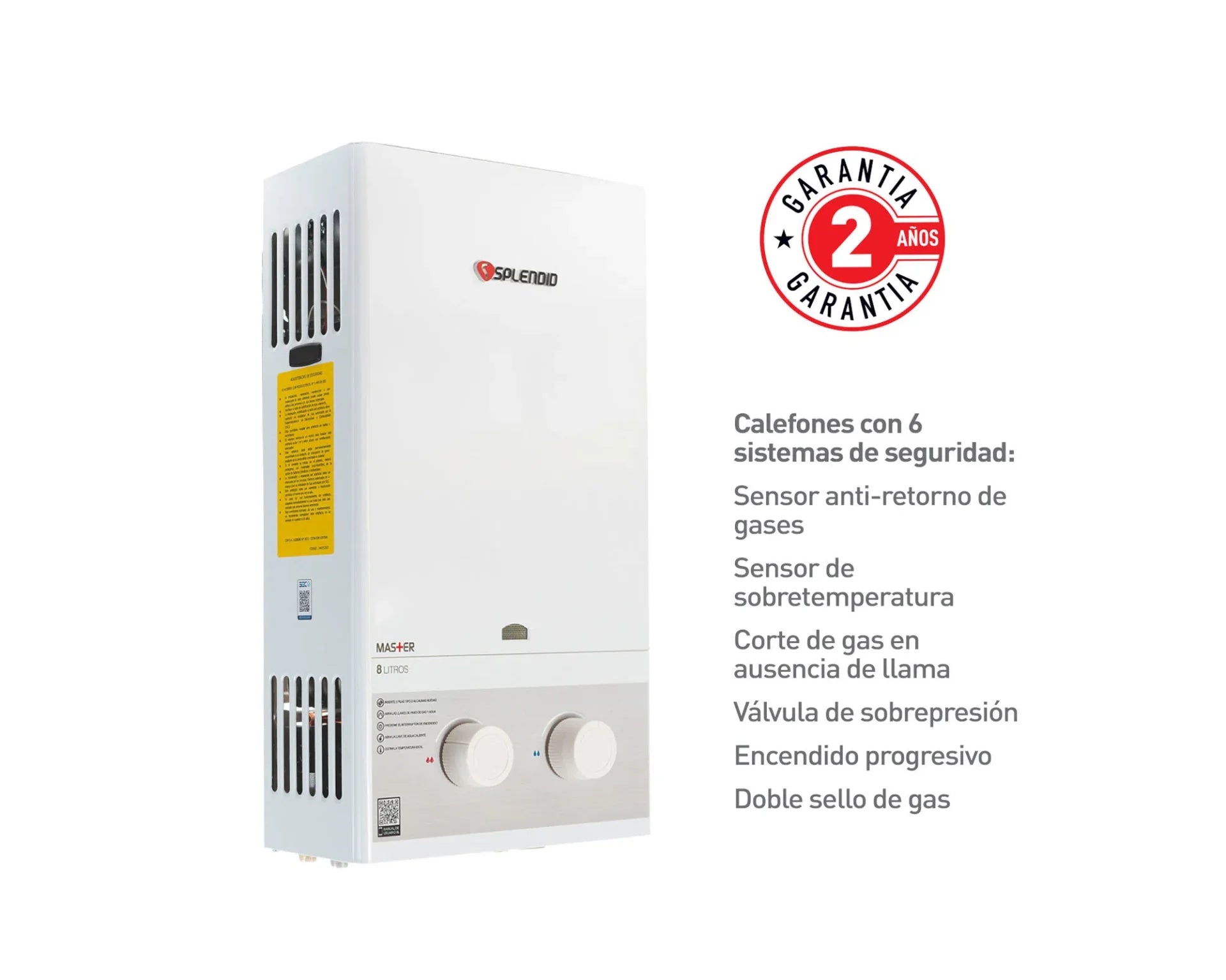 Calefont Ionizado Tiro Natural 8 Litros Gas Natural Master Splendid