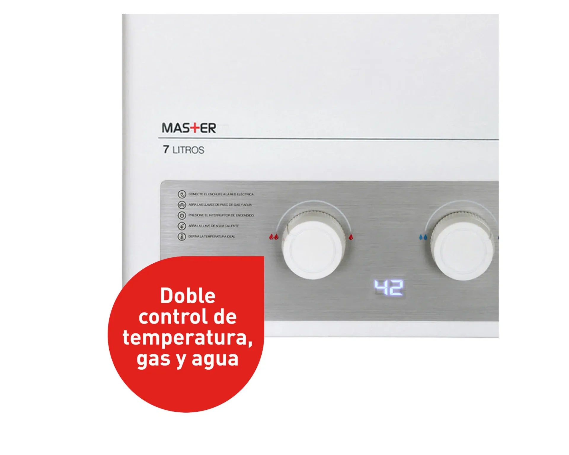 | Funciones | Pantalla Digital, Doble Control (Agua y Gas), Antirretorno de Gases |